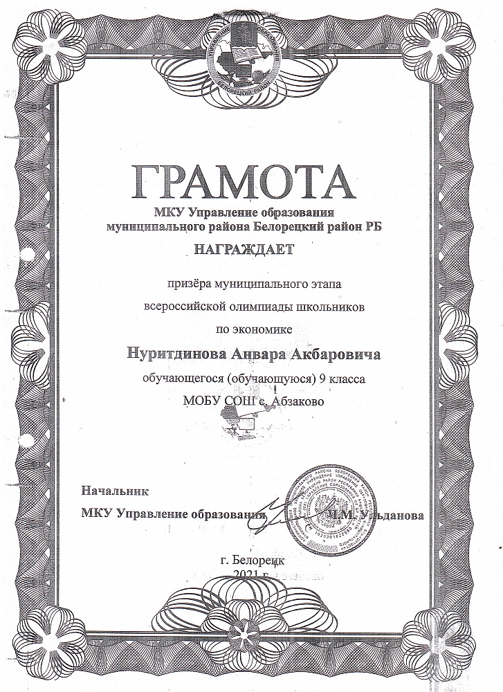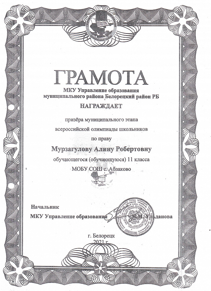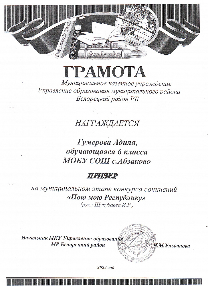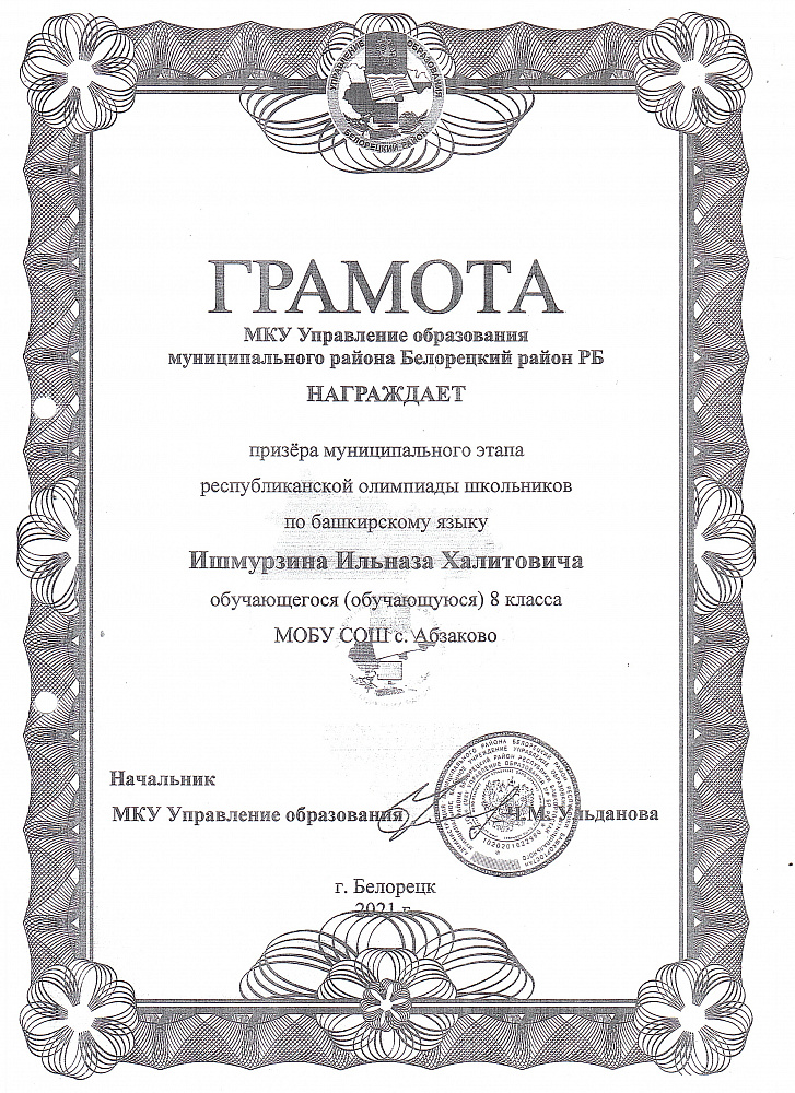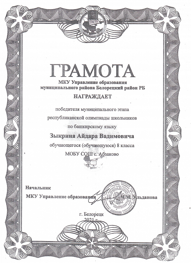 Муниципальное общеобразовательное бюджетное учреждение средняя общеобразовательная школа С. Абзаково Муниципального района Белорецкий район Республики Башкортостан