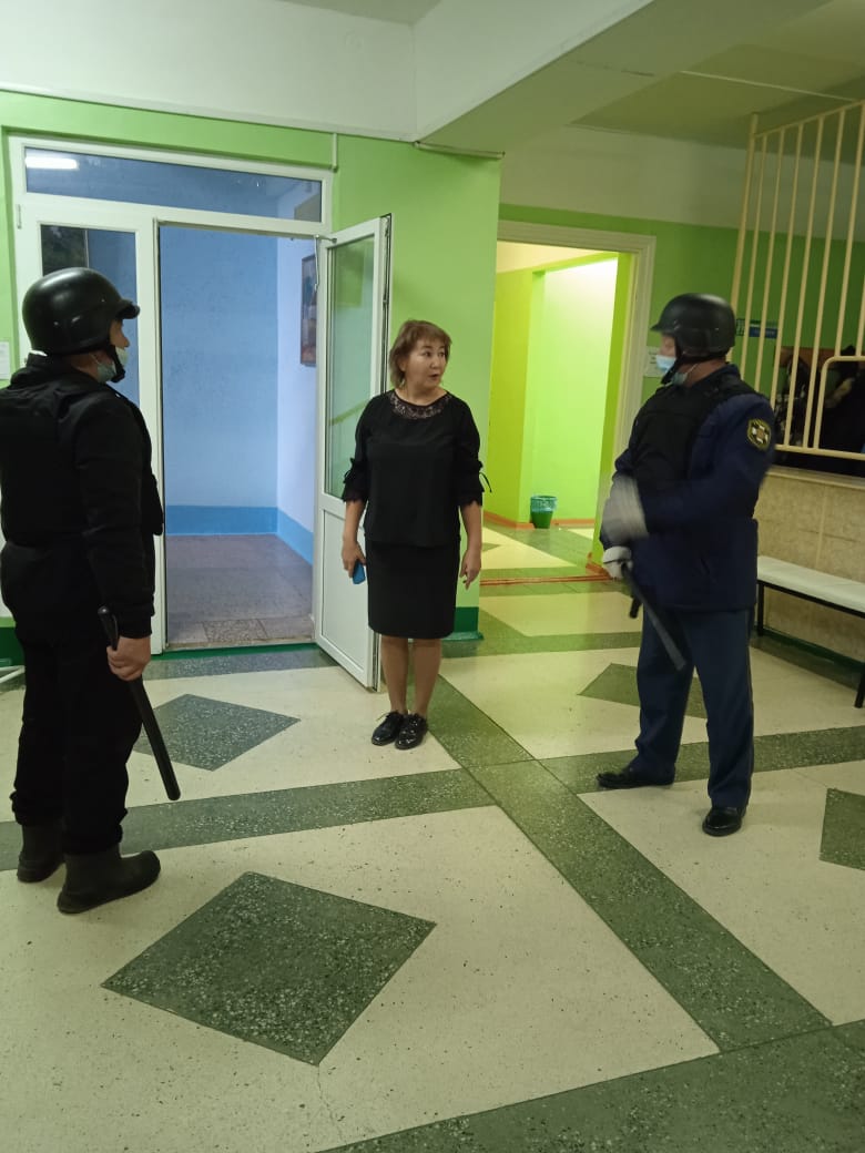 Также сегодня в школе была организовано учебно–тренировочное занятие по отработке действий работников и учащихся школы по выполнению первоочередных мер при возникновении экстремальных ситуаций террористического характера. Все обучающиеся и преподаватели справились с этой задачей.