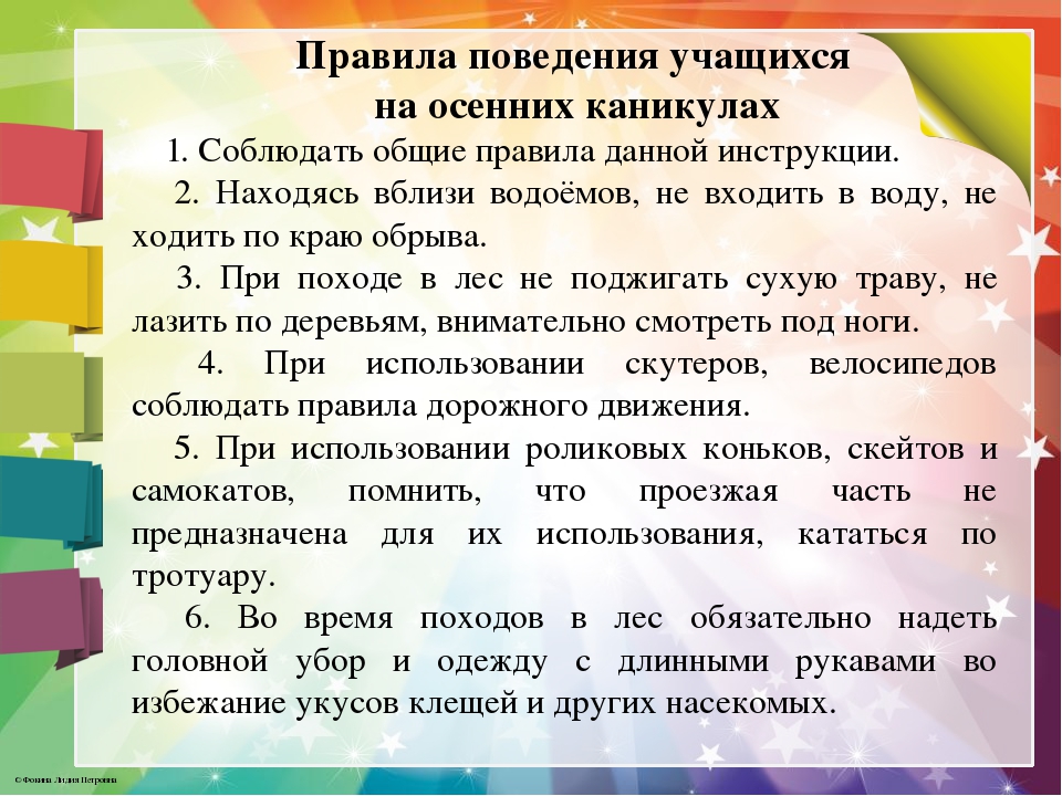 Дорогие ребята, а также родители! Очень скоро начнутся долгожданные осенние каникулы. Спешим напомнить вам о правилах безопасного поведения. Будьте внимательны, аккуратны и осторожно. Берегите себя и своих близких.