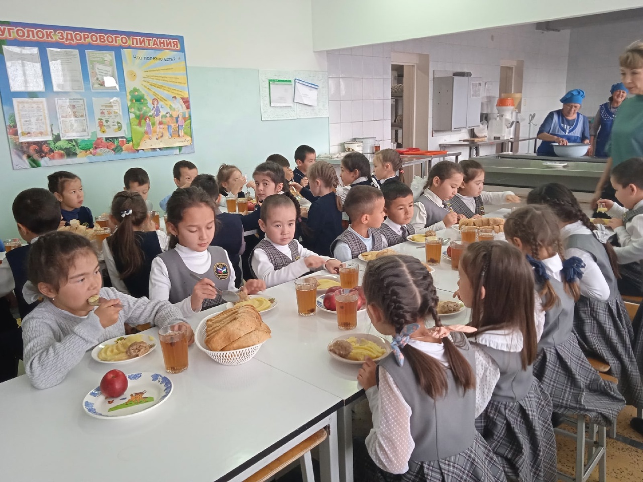 Сегодня в МОБУ СОШ с.Абзаково состоялся Единый республиканский день открытых дверей " Родители Башкортостана за здоровое питание". Руководители внеурочной деятельности "Здоровое питание" Якупова В.С., Баймухаметова Р.Р. провели открытые уроки для родителей. После которых родители отправились в школьную столовую, изучили меню, контрольное блюдо, смогли увидеть наглядно накрытые столы, порции, попробовали школьную еду.